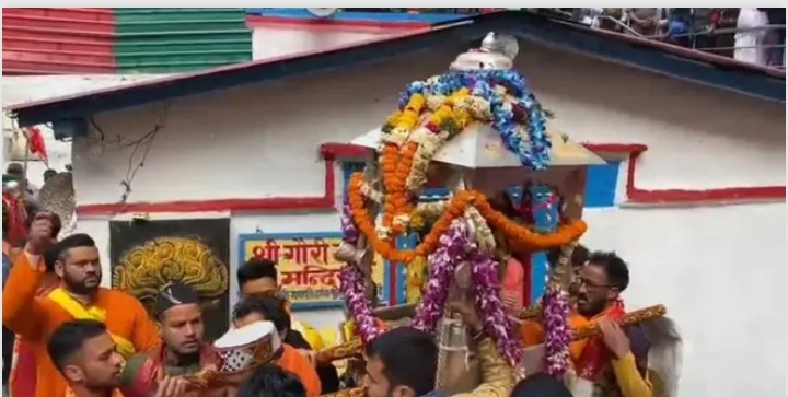 गौरीकुंड (रूद्रप्रयाग)।भगवान केदारनाथ जी की पंचमुखी डोली ने आज बृहस्पतिवार 9 मई को प्रात: 8.30 बजे तीसरे पड़ाव गौरामाई मंदिर गौरीकुंड से श्री केदारनाथ धाम प्रस्थान हुई।बीते 6 मई को देवडोली श्री ओंकारेश्वर मंदिर उखीमठ से श्री विश्वनाथ मंदिर गुप्तकाशी से प्रवास हेतु पहुंची तथा मंगलबार 7 मई को दूसरे पड़ाव फाटा पहुंची थी 8 मई देर शाम को पंचमुखी डोली गौरामाता मंदिर गौरीकुंड पहुंची थी।उल्लैखनीय है श्री केदारनाथ धाम के कपाट कल शुक्रवार 10 मई को खुल रहे है। भगवान केदारनाथ की चलविग्रह उत्सव पंचमुखी मूर्ति की देवडोली को कई दशकों से श्री बदरीनाथ केदारनाथ मंदिर समिति के स्वयं सेवक एवं हक- हकूकधारी पांवों में बिना कुछ पहने पैदल चलकर शीतकालीन गद्दीस्थल श्री ओंकारेश्वर मंदिर उखीमठ से श्री केदारनाथ धाम तक पहुंचाते है।