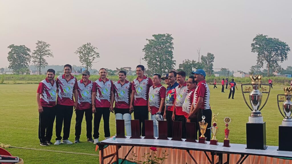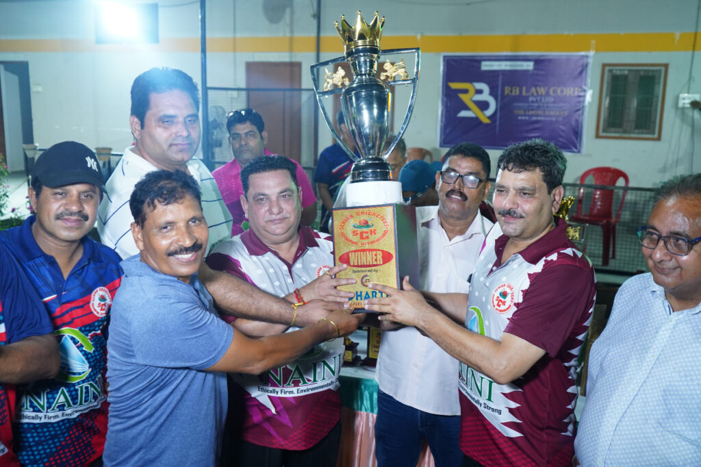 शिशिर शर्मा ने नाबाद 20 रन व एसडीएम अभय प्रताप सिंह ने नाबाद 29 रन व संजय भट्ट ने 28 रन बनाए। सीनियर ब्लू की तरफ से शमशुद्दीन, संजय डंगवाल, एके शुक्ला, विवेक मिश्रा, एके चहल ने एक-एक विकेट लिया। जवाब में सीनियर ब्लू की पूरी टीम 131 रन बना सकी। राजेन्द्र सक्सेना ने पहले ही ओवर में कप्तान एके चहल को दीपक बाली के हाथ कैच करा दिया, जिससे टीम दबाव में आ गई। कुलदीप रावत ने 20 रन, अमरपाल ने 16 रन, जोगेंद्र ने 11 रन, केशव अग्रवाल ने नाबाद 12 रन, अश्वनी शर्मा ने 15 रन बनाए। पूरी टीम 131 रन बना सकी। दीपक बाली ने शानदार गेंदबाजी करते हुए 2 विकेट, संजय भट्ट ने 3 विकेट, शिशिर शर्मा व राजेंद्र सक्सेना ने एक विकेट लिया। विजेता टीम को ट्राफी दीपक बाली ने, जबकि उपविजेता टीम को विजेन्द्र चौधरी व केशव अग्रवाल ने ट्राफी दी। मंच संचालन शरद पंत व राजेंद्र सक्सेना ने किया। सभी सीनियर खिलाड़ियों को सम्मानित भी किया गया। इस अवसर पर पूर्व पालिकाध्यक्ष शमशुद्दीन, राजीव चौधरी, योगेश जोशी, विमल गुड़िया, डा. अशरफ अली, महेंद्र खुराना, रवि शर्मा, रवि श्रीवास्तव, विवेक मिश्रा, अमित सक्सेना, विजय शंकर शर्मा, नूतन नागर, प्रमोद, कैलाश चौधरी, रियाज अख्तर आदि उपस्थित रहे। मैच आयोजन में नैनी पेपर मिल, सिद्धार्थ पेपर मिल, केशव अग्रवाल ने विशेष सहयोग दिया। अगले मैच का आयोजन दीपक बाली द्वारा किया जाएगा।