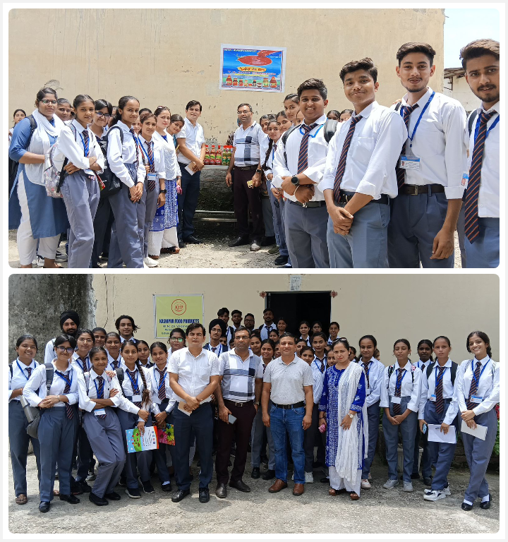 काशीपुर।बाजपुर रोड स्थित सत्येंद्र चंद गुड़िया इंस्टिट्यूट ऑफ़ मैनेजमेंट एंड लॉ कॉलेज के यूजी पाठ्यक्रम बीबीए, बीसीए एवं बीकॉम (ऑनर्स) प्रथम सेमेस्टर के लगभग 80 से अधिक विद्यार्थियों ने काशीपुर की दो फूड प्रोसेसिंग कंपनी काशीपुर फूड प्रोडक्ट्स लिमिटेड एवं वीके फूड प्राइवेट लिमिटेड का औद्योगिक भ्रमण किया। उक्त जानकारी लेते हुए संस्थान की प्राचार्या डॉक्टर निमिषा अग्रवाल ने बताया कि संस्थान के प्लेसमेंट अधिकारी आनंद सिंह एवं असिस्टेंट प्रोफेसर डॉक्टर अर्शी सिद्दीकी के नेतृत्व में गए उक्त छात्र छात्राओं के दल ने दोनों ही कंपनियों में भ्रमण कर उद्यमिता के गुणों को सीखा विद्यार्थियों ने काशीपुर फूड प्रोडेक्ट प्राइवेट लिमिटेड में निर्मित होने वाली बेकरी एवं कन्फेक्शनरी प्रोडक्ट्स जैसे कैंडीज, कुकीज,रस्क आदि तथा वीके फूडस में निर्मित होने वाली पदार्थ जैसे विभन्न प्रकार की सॉसेज, विनेगर सेजवान चटनी तथा फास्ट फूड प्रोडक्ट्स में इस्तेमाल होने वाली खाद्य पदार्थों के निर्माण की प्रक्रिया को बखूबी देखा एवं समझा इस अवसर पर वीके इंडस्ट्रीज के डायरेक्टर विचित्र कुमार एवं काशीपुर फूड प्रोडक्ट्स के डायरेक्टर विश्वदीप चौहान ने विद्यार्थियों को प्लांट का भ्रमण कराते हुए उसमे निर्मित होने वाली सभी प्रोडक्ट के बारे में पूरी जानकारी दी साथ ही इसके निर्माण, पैकेजिंग, डिस्ट्रीब्यूशन एवं अन्य प्रक्रियाओं को किस प्रकार किया जाता है उसकी विधिवत जानकारी दी। साथी ही उन्होंने सभी विद्यार्थियों को एंटरप्रेन्योरशिप के विषय में ही बताया कि वह भविष्य में किस प्रकार अपना खुद का व्यवसाय एवं उद्योग स्थापित कर सकते हैं। अंत में अधिकारियों ने विद्यार्थियों के उत्सुक सवालों के जवाब भी दिए। औद्योगिक भ्रमण कर लौटे विद्यार्थी काफी उत्साहित है यहां बताते चलें कि संस्थान लगातार अपने विद्यार्थियों को काशीपुर एवं जिले के आसपास स्थित कंपनियों का औद्योगिक भ्रमण उनके पाठ्यक्रम अनुसार करता रहता है संस्थान की प्रबंध समिति इस ओर लगातार प्रयासरत रहती है कि विद्यार्थियों के अंदर उद्यमिता के गुण अधिक से अधिक विकसित हो सके जिससे वह अपना भविष्य स्वर्णिम बना सके इसलिए इस प्रकार के भ्रमण लगातार आयोजित किए जाते रहते हैं।