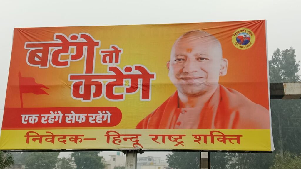 काशीपुर। हिन्दू राष्ट्र शक्ति द्वारा लगाई गई फ्लेक्सी से काशीपुर नगर निगम चुनाव में यूपी के मुख्यमंत्री योगी आदित्यनाथ की एंट्री कर कर चुनावी माहौल को ने सिर्फ गर्म कर दिया है बल्कि सनातन समाज को यह सोचने पर मजबूर कर दिया है कि एक हो जाओ वरना बाटोगे तो काटोगे। करती फ्लैक्सी से चर्चाओं का बाजार गर्म है और विरोधी दलों की नींद उड़ीपडी है।