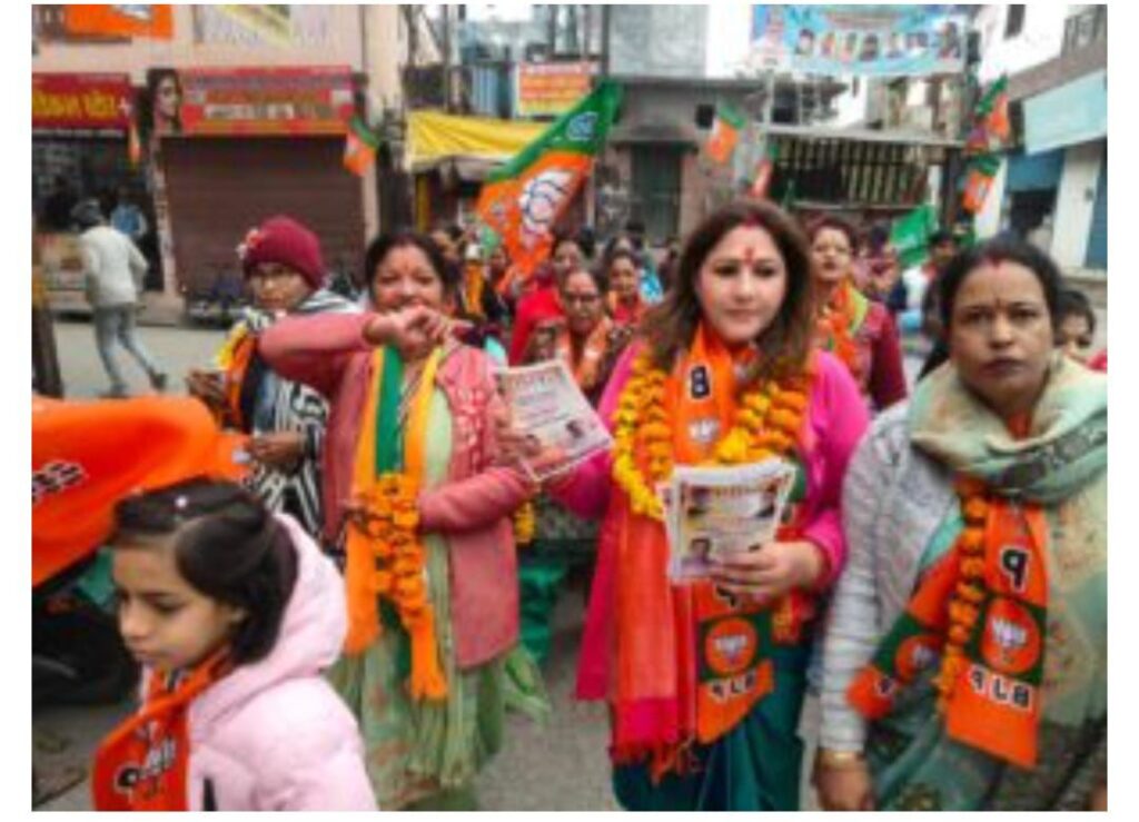 काशीपुर ।नगर निगम चुनाव में भाजपा का कमल खिलाने के लिए जहां एक और मेयर प्रत्याशी दीपक बाली की धर्मपत्नी उर्वशी दत्त बाली महिला कार्यकर्ताओं के साथ चुनाव प्रचार में दिन-रात जुटी हुई हैं वहीं भाजपा महिला मोर्चा ने भी चुनाव प्रचार में पूरी ताकत झोक दी है।