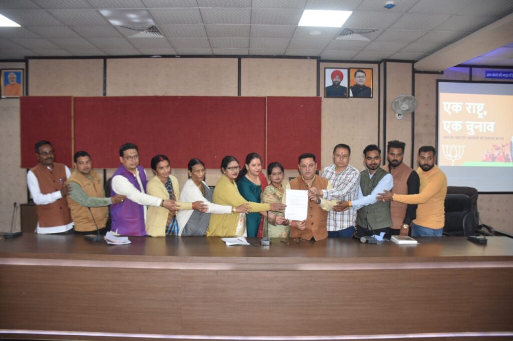 “एक राष्ट्र, एक चुनाव” भारत को एक सशक्त, संगठित और लोकतांत्रिक दृष्टि से अधिक प्रभावी राष्ट्र बनाने की दिशा में एक बड़ा कदम है। यह पहल न केवल संसाधनों की बचत करेगी, बल्कि सुशासन को भी मजबूत करेगी, जिससे देश के विकास की गति तेज होगी। इस दौरान पार्षद पुष्कर विष्ट, अनिता कांबोज, वैशाली गुप्ता, रवि प्रजापति, बीना नेगी, अंजना, कुलदीप शर्मा, सीमा सागर, अशोक सैनी, अनूप सिंह व ममता शाहिद भाजपा के जिला उपाध्यक्ष लवीश अरोरा जिला कोषाध्यक्ष राहुल पैगिया चौधरी समरपाल सिंह जसवीर सिंह सैनी बिट्टू राणा आदि भी मौजूद रहे।