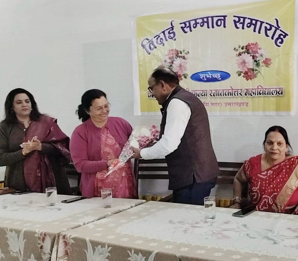 महाविद्यालय की प्राचार्या डॉ0 कीर्ति पन्त, एसो0 प्रो0 डॉ0 दीपिका गुड़िया आत्रेय, बी0एड0 विभाग एवं समस्त महाविद्यालय परिवार के सदस्यों द्वारा सेवानिवृत्त हुए संदीप भारद्वाज को उज्ज्वल भविष्य की शुभकामनाओं सहित ससम्मान भावपूर्ण विदाई दी। श्री भारद्वाज अपने विगत स्मरणीय पलों को स्मरण कर भावुक हुए।