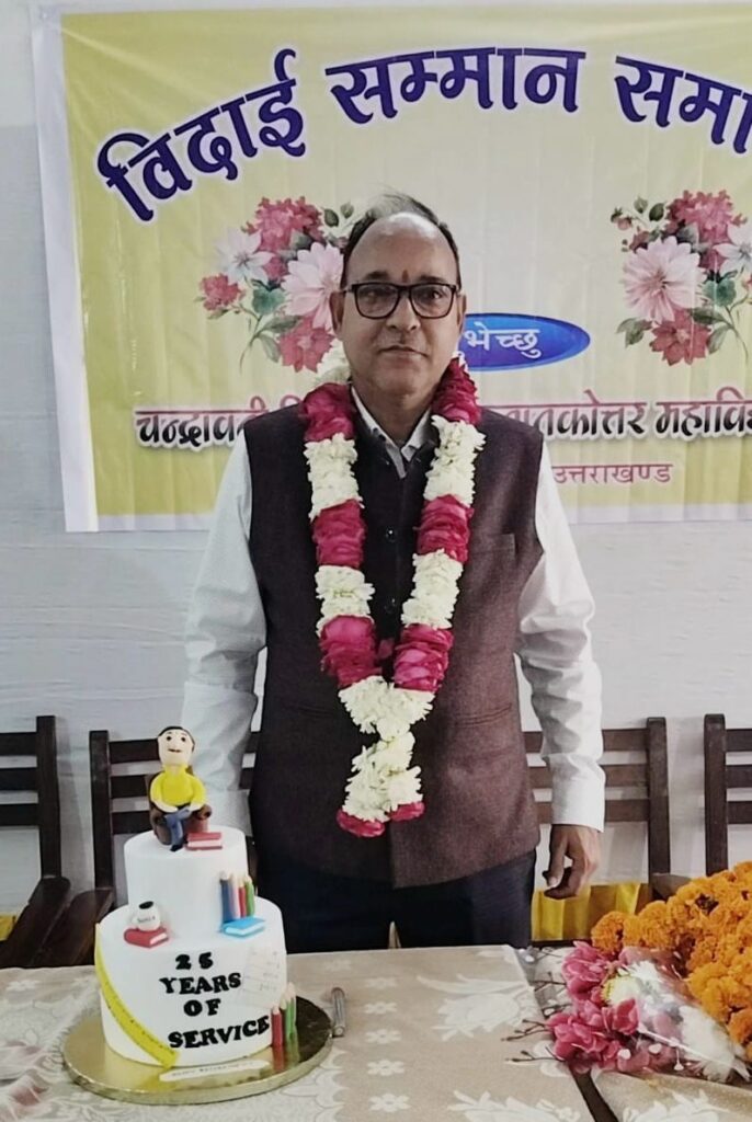 काशीपुर। चन्द्रावती तिवारी कन्या स्नातकोत्तर महाविद्यालय, में आज दिनांक 19 फरवरी, 2025 को महाविद्यालय के वरिष्ठ लिपिक श्री संदीप भारद्वाज का विदाई सम्मान समारोह बड़े धूमधाम से मनाया गया। इस अवसर पर पं0 गोविन्द बल्लभ पंत शिक्षा समिति की अध्यक्षा श्रीमती विमला गुड़िया जी द्वारा उपहार भेंट कर सम्मानित किया।