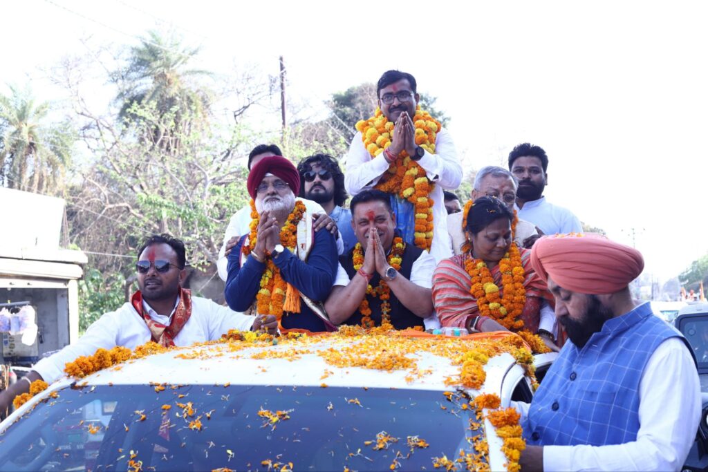 यहां के बाद जिला अध्यक्ष का लोक निर्माण विभाग के डाक बंगले महेशपुरा की पुलिया के पास , भाजपा नेता ईश्वर चंद्र गुप्ता के संस्थान पर तथा उसके बाद महाराणा प्रताप चौक पर जोरदार स्वागत हुआ। महाराणा प्रताप चौक पर जिला अध्यक्ष मनोज पाल ने महापौर दीपक बाली के साथ महाराणा प्रताप की प्रतिमा पर माल्यार्पण किया। मनोज पाल के साथ खुली गाड़ी में विधायक त्रिलोक सिंह चीमा महापौर दीपक बाली भाजपा नेता राम मेहरोत्रा आशीष गुप्ता गुरविंदर सिंह चंडोक और सीमा चौहान आदि साथ चल रहे थे।