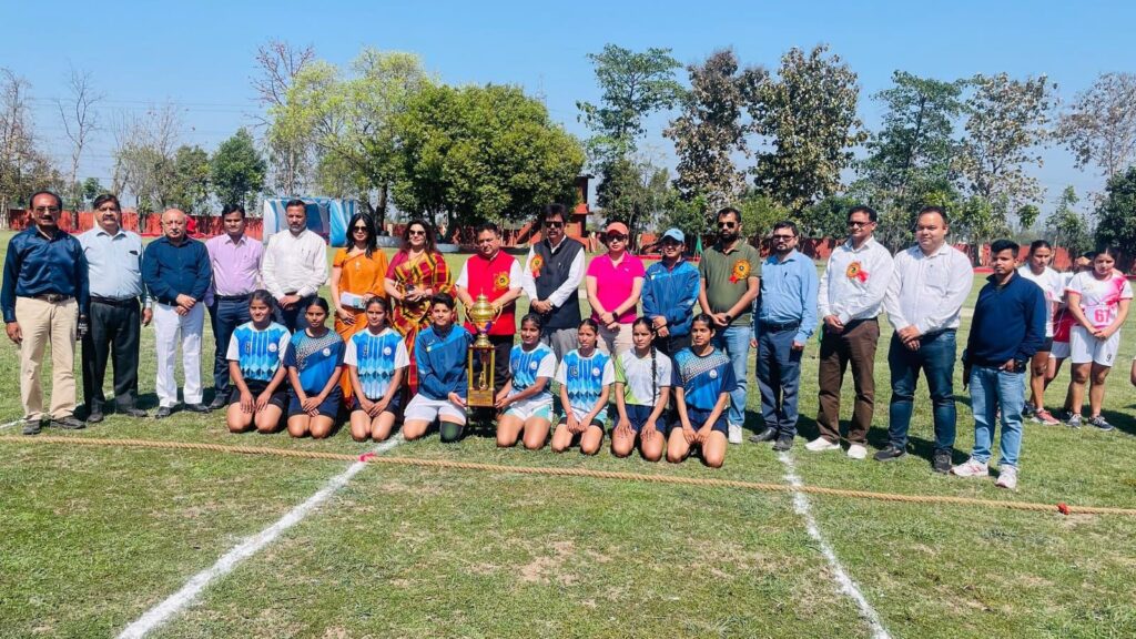काशीपुर । बाजपुर रोड स्थित सत्येंद्र चंद गुड़िया इंस्टिट्यूट ऑफ़ मैनेजमेंट एंड लॉ कॉलेज के प्रांगण में दिनांक 18 मार्च 2025 को कुमाऊं विश्विद्यालय अंतर महाविद्यालय द्वारा आयोजित ट्रैकिंग एवं फिटनेस (महिला) प्रतियोगिता का शाम 7 बजे पुरुस्कार वितरण के साथ सफ़तपूर्वक समापन हुआ। उक्त जानकारी देते हुए संस्थान की प्राचार्य डाक्टर निमिषा अग्रवाल ने बताया कि उक्त प्रतियोगिता में एसबीएस कॉलेज रुद्रपुर, एमबीपीजी हल्द्वानी, पीएनजी कॉलेज रामनगर, चंद्रावती तिवारी कन्या महाविद्यालय काशीपुर, एस सी गुड़िया आईएमटी, एवं एस सी गुड़िया लॉ कॉलेज काशीपुर सहित कुल 6 टीमों ने प्रतिभाग किया। प्रतियोगिता में 50 मीटर स्प्रिंट, क्रिकेट बॉल थ्रो, शॉट पुट, नी बैंड सिटअप, स्ट्रेंथ फिटनेस , वुड वॉल , मिनी गोल्फ, स्टेंडिंग बोर्ड जंप एवं टग ऑफ वार सहित कुल 9 खेल प्रतियोगियों आयोजित हुई जिनमें एसबीएस कॉलेज रुद्रपुर की टीम कुल 5 गोल्ड के साथ ओवरआल विजेता बनी जबकि 4 गोल्ड के साथ एमबीपीजी हल्द्वानी उप विजेता रही। विजेता एवं उप विजेता टीम एवं इंडिविजुअल खिलाड़ियों सहित टीम मैनेजर एवं कोचों को विश्वविद्यालय के क्रीड़ाअधिकारी प्रो. (डॉ) नागेंद्र शर्मा ने ट्रॉफी, मेडल एवं अन्य पारितोषिक देकर पुरुस्कृत किया उन्होंने सभी खिलाड़ियों को साधुवाद देते हुए कहा कि सभी खेलों में खिलाड़ियों ने अपना बेहतर प्रदर्शन किया है उन्होंने भविष्य प्रतियोगिताओं के लिए खिलाड़ियों को शुभकामनाएं भी दी। साथ ही इस अवसर पर प्रोफेसर नागेंद्र शर्मा ने कुमारी मनजोत कौर, योगेश पांडे एवं श्वेता भाकुनी को मिनी गोल्फ प्रतियोगिता में राष्ट्रीय स्तर में प्रतिभाग के लिए सम्मानित भी किया गया। इस अवसर पर मिनी गोल्फ एसोसिएशन के प्रदेश उपाध्यक्ष पवन कुमार बख्शी, ऑफिशियल श्रीमती महिमा भंडारी सहित संस्थान के समस्त निदेशकगण, फैकल्टी एवं स्टाफ उपस्थित रह। संचालन क्रीड़ा प्रभारी पंकज रावत एवं दीपक गुप्ता द्वारा संयुक्त रूप से किया गया।