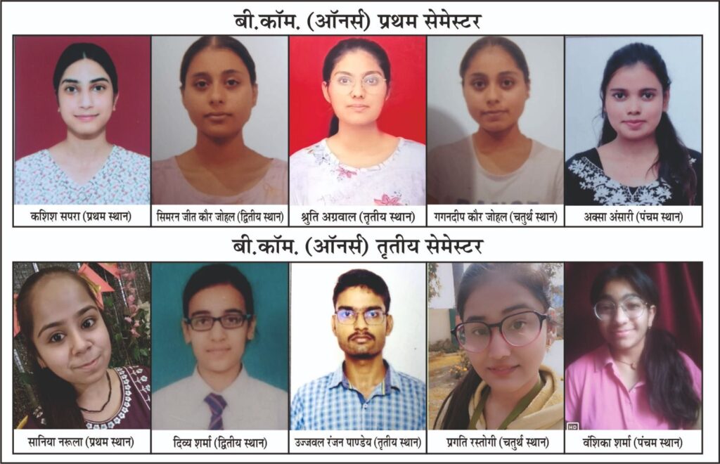 काशीपुर । बाजपुर रोड स्थित सत्येंद्र चंद्र गुड़िया इंस्टीट्यूट आफ मैनेजमेंट एंड लॉ कॉलेज के यूजी पाठ्यक्रम बी.कॉम (ऑनर्स) प्रथम एवं तृतीय सेमिस्टर के विगत दिवस आए परीक्षा परिणामों में संस्थान के विद्यार्थियों ने उत्कृष्ठ प्रदर्शन को दोहराते हुए अपनी- अपनी कक्षाओं में उच्च अंक प्राप्त करें है। उक्त जानकारी देते हुए संस्थान की प्राचार्य डॉक्टर निमिषा अग्रवाल ने बताया कि उक्त पाठयक्रम के प्रथम सेमेस्टर के परिणामों में कशिश सपरा ने सर्वाधिक 76.8% अंक प्राप्त कर प्रथम स्थान प्राप्त किया वही सिमरनजीत कौर जोहल ने 75.2% के साथ द्वितीय स्थान पर रहीं तो श्रुति अग्रवाल 73.6% के साथ तृतीय स्थान प्राप्त किया वहीं गगनदीप कौर जोहल 72.2% एवं अक्सा अंसारी 71.6 % अंकों के साथ क्रमशः चतुर्थ एवं पंचम स्थान पर रहे । जबकि तृतीय सेमेस्टर के परिणामों में सान्या नरूला ने सर्वाधिक 82.8 प्रतिशत अंकों के साथ प्रथम स्थान प्राप्त किया वही दिव्य शर्मा 78.8% के साथ द्वितीय, उज्जवल रंजन पाण्डेय 76.2% के साथ तृतीय स्थान पर रहे तो प्रगति रस्तोगी 73.8% एवं वंशिका शर्मा 73.2% अंकों के साथ क्रमशः चतुर्थ एवं पंचम स्थान पर रहे। इसके अतिरिक्त अन्य विद्यार्थियों ने भी कक्षा में श्रेष्ठ प्रदर्शन किया है, यहां बताते चलें की लगातार संस्थान के विद्यार्थी अपनी अपनी कक्षाओं में अच्छे अंक प्राप्त कर विश्वविद्यालय स्तर पर अपना नाम रोशन कर रहे हैं। विद्यार्थियों के उक्त प्रदर्शन पर संस्थान की चेयरमैन श्रीमती विमला गुड़िया सहित समस्त प्रबन्ध समिति, निदेशक गण, फैकल्टी एवं स्टॉफ ने हर्ष व्यक्त करते हुए उन्हें बधाई दी है।