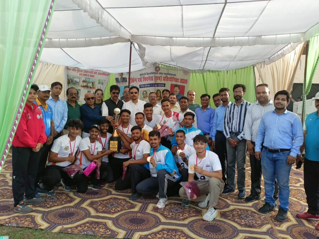 काशीपुर। बाजपुर रोड स्थित सत्येंद्र चंद्र गुड़िया इंस्टीट्यूट आफ मैनेजमेंट एंड लॉ कॉलेज के प्रांगण मे दिनांक 1 जून 2025 को कुमाऊं विश्वविद्यालय अंतर महाविद्यालय ट्रैकिंग एवं फिटनेस पुरुष प्रतियोगिता का आयोजन किया गया । प्रतियोगिता में खेले गए विभिन्न खेलों में एमबीपीजी हल्द्वानी ने ओवरऑल चैंपियनशिप जीत कर विजेता ट्रॉफी पर कब्जा किया ।जबकि डीएसबी केंपस नैनीताल उप विजेता रही। विजेता एवं उपविजेता खिलाड़ियों को समापन समारोह के मुख्य अतिथि प्रोफेसर महेंद्र सिंह राणा जी ने ट्रॉफी, मेडल, प्रमाण पत्र एवं अन्य पारितोषिक देकर सम्मानित किया इस अवसर पर उन्होंने सभी खिलाड़ियों को अपना साधुवाद देते हुए कहा कि खेल में किसी की एक जीत और किसी एक की हार होती ही है लेकिन प्रत्येक खिलाड़ी को वह जिस भी खेल से जुड़ा है उसमें खेल भावना का परिचय देना अति आवश्यक है उन्होंने सभी खिलाड़ियों को भविष्य के लिए भी शुभकामनाएं देते हुए अपना आशीर्वाद दिया। जानकारी देते हुए प्रतियोगिता के आयोजक सचिव पवन कुमार बख्शी ने बताया कि प्रतियोगिता में डीएसबी केंपस नैनीताल, एमबीपीजी हल्द्वानी, राजकीय महाविद्यालय रुद्रपुर, एवं राजकीय महाविद्यालय सितारगंज सहित कुल 4 टीमें प्रतिभाग कर रही है। प्रतियोगिता में टग ऑफ वार, 50 मी स्प्रिंट क्रिकेट बॉल थ्रो, शॉट पुट, मिनी गोल्फ, स्टैंडिंग ब्रॉड जंप, एवं नी बंद सीट अप आदि खेलो आयोजन हो रहा है। इस अवसर कुमाऊं विश्वविद्यालय क्रीड़ा अधिकारी डॉक्टर नागेंद्र शर्मा ने विजेता एवं उप विजेता टीम को शुभकामनाएं दी एवं प्रोफेसर महेंद्र सिंह राणा जी का आभार प्रकट किया।