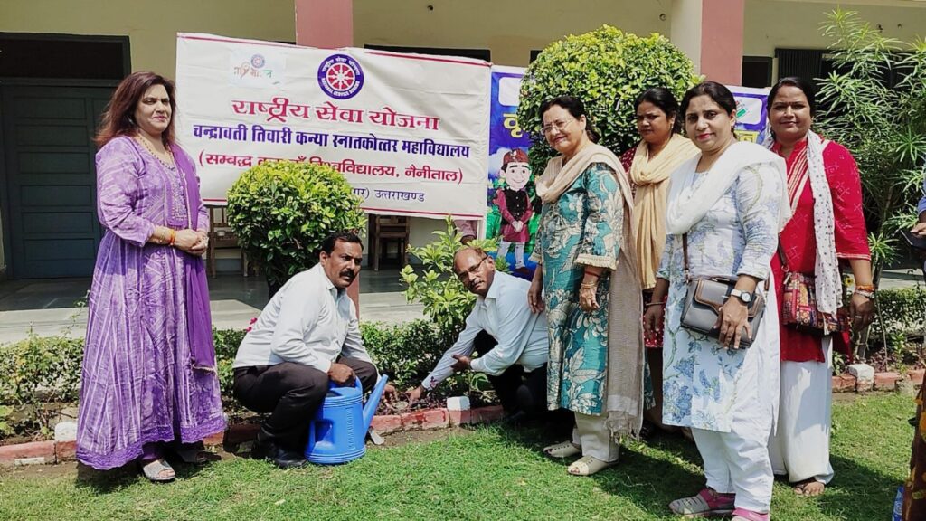 चन्द्रावती तिवारी कन्या स्नातकोत्तर महाविद्यालय काशीपुर में राष्ट्रीय सेवा योजना एवं स्वीप के बैनर तले “विश्व पर्यावरण दिवस” मनाया। इस अवसर पर काशीपुर के खण्ड शिक्षा अधिकारी श्री धीरेन्द्र कुमार साहू, सुदामा लाल प्रथम जूनियर हाईस्कूल काशीपुर के प्रधानाचार्य श्री सुरेश सिंह, निवार्चन अधिकारी श्री अनिल कुमार, महाविद्यालय की प्राचार्या डॉ0 कीर्ति पन्त व एसो0 प्रोफेसर डॉ0 दीपिका गुड़िया आत्रेय ने वृक्षारोपण किया।