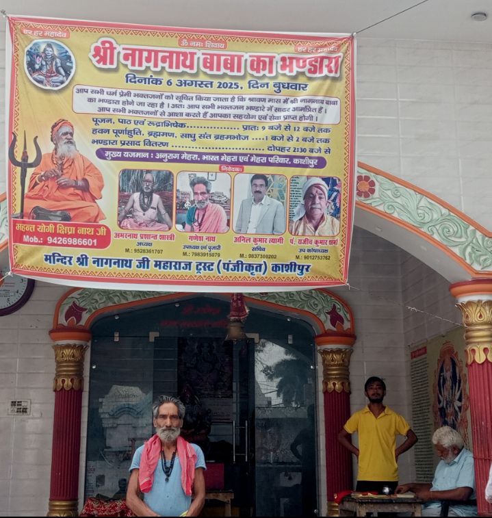 काशीपुर। आगामी 6 अगस्त 2025, दिन बुधवार को श्री नागनाथ बाबा का वार्षिक भंडारा श्रद्धा और आस्था के वातावरण में आयोजित होने जा रहा है। यह आयोजन श्री नागनाथ जी महाराज ट्रस्ट (पंजीकृत), काशीपुर द्वारा किया जा रहा है, जिसमें बड़ी संख्या में श्रद्धालुओं के शामिल होने की संभावना है।