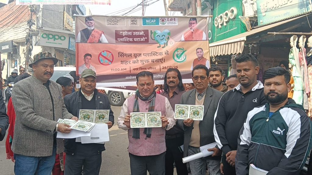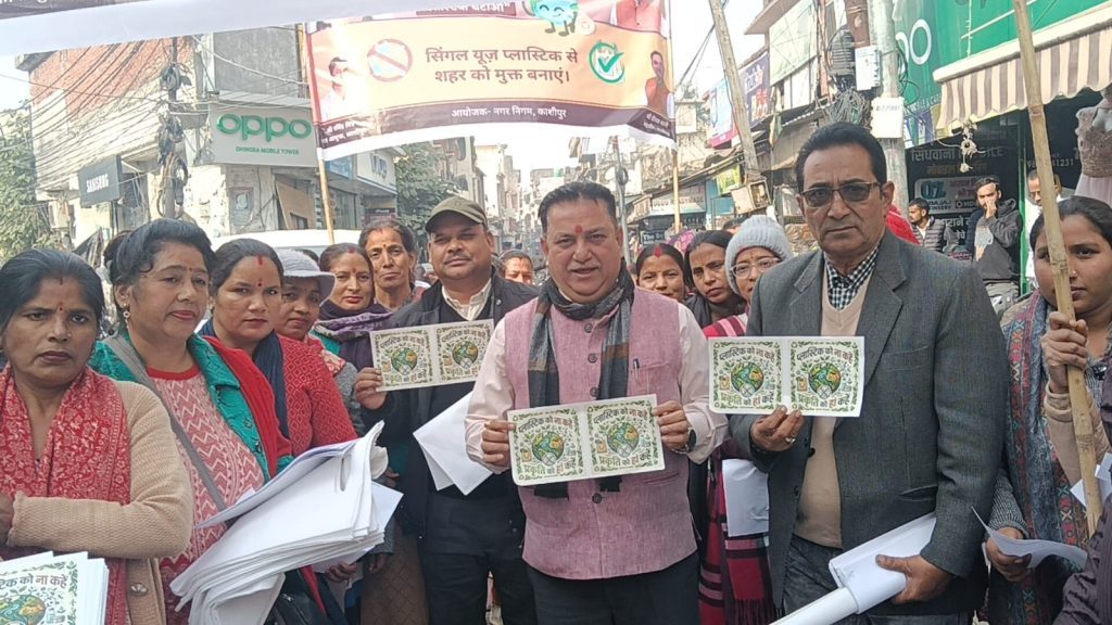 काशीपुर। नगर निगम काशीपुर द्वारा सिंगल यूज़ प्लास्टिक के दुष्प्रभावों से आमजन को जागरूक करने तथा पर्यावरण संरक्षण को बढ़ावा देने के उद्देश्य से बुधवार को मुख्य बाजार एवं पुरानी सब्जी मंडी क्षेत्र में “झोला उठाओ, प्लास्टिक घटाओ” विषय पर जन-जागरूकता रैली का आयोजन किया गया।
