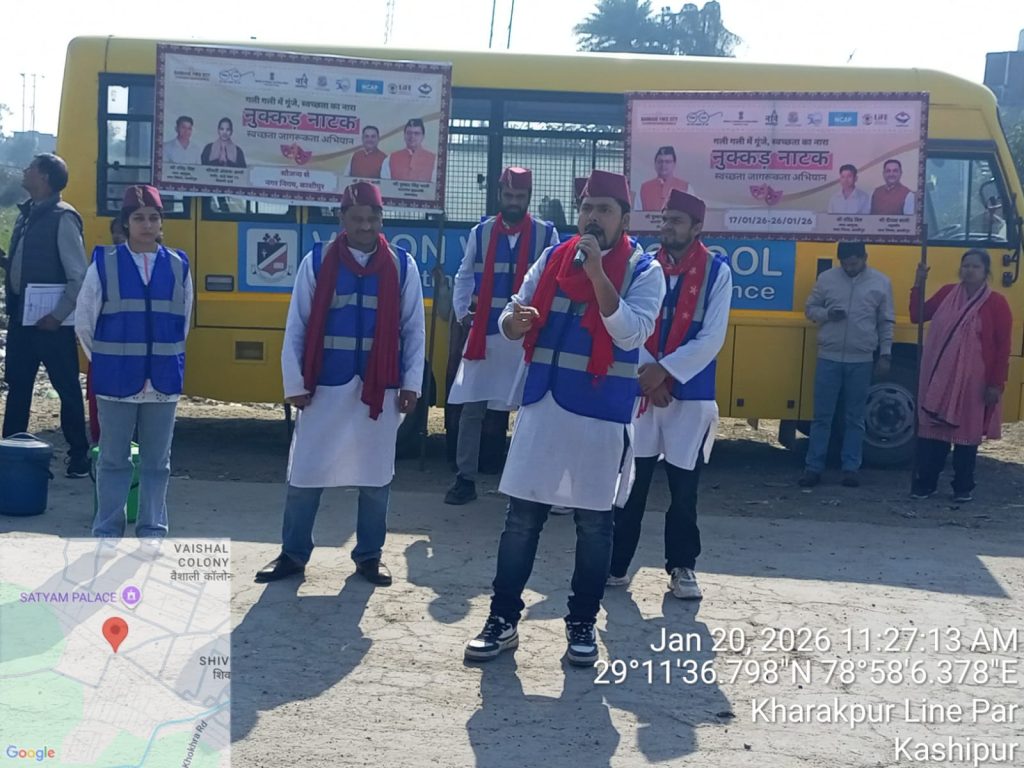 काशीपुर। नगर को स्वच्छ, सुंदर और स्वस्थ बनाए रखने के उद्देश्य से नगर निगम काशीपुर के सहयोग से लोक कलाकारों द्वारा प्रस्तुत किए जा रहे नुक्कड़ नाटक लगातार तीसरे व चौथे दिन भी नगर के विभिन्न वार्डों में आयोजित किए गए। इन नुक्कड़ नाटकों के माध्यम से आमजन को सफाई के प्रति जागरूक किया जा रहा है, जिसका लोगों पर सकारात्मक प्रभाव साफ नजर आ रहा है।