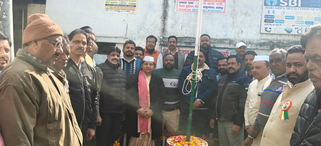 काशीपुर।गणतंत्र दिवस के अवसर पर स्थानीय मोहल्ला काजीबाग स्थित झंडा चौक पर कांग्रेसी कार्यकर्ताओं द्वारा ध्वजारोहण कर देश की एकता एवं अखंडता की शपथ ली गई। कार्यक्रम का नेतृत्व महानगर कांग्रेस कमेटी की अध्यक्ष अलका पाल ने किया।